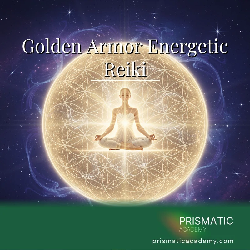 Surround yourself with golden protective energy. Distance Reiki attunement for energetic shielding. Manual, certificate, and support included.